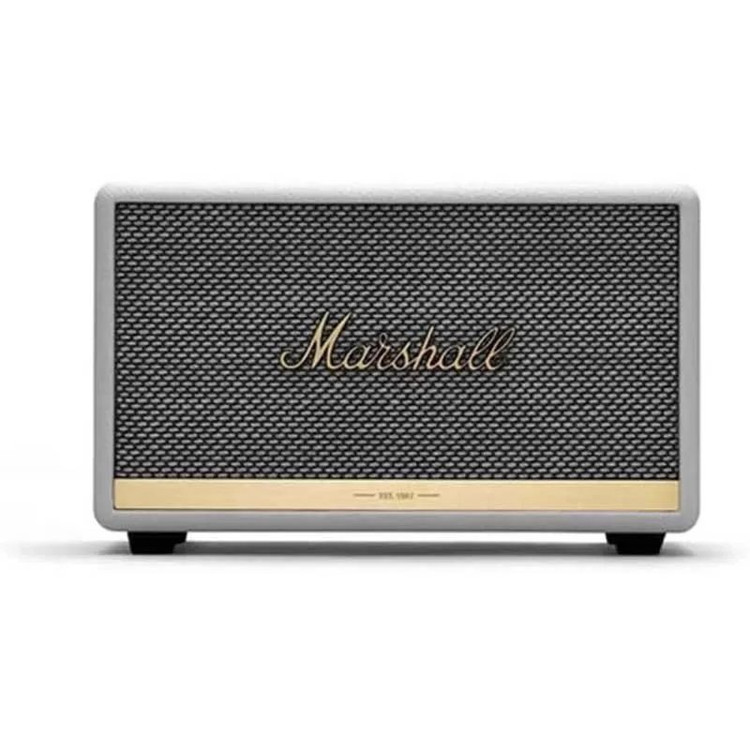 کمپانی Marshall به تازگی اسپیکر Acton II را روانه بازار کرده که یک اسپیکر خانگی بیسیم است. این اسپیکر تمام ویژگیهای خانوادگ مارشال را به ارث برده است که طراحی منحصر به فرد یکی از آنهاست. این اسپیکر قابلیت تنظیم صدا، کنترل بیس، صدای زیر و درجه صدا را داراست. این اسپیکر بدون توجه به ظاهر کوچک، دارای قدرت بالایی است. با بررسی کامل این محصول در تهران اسپیکر همراه باشید. این اسپیکر دراندازه کوچک ساخته شده تا در حمل و نقل دردسر ساز نباشد و شما به راحتی بتوانید به هرمکان که مایل هستید آن را انتقال دهید و از پخش موسیقی در بالاترین کیفیت لذت ببرید. سطح صدای بالا و حجیم به نسبت سایز این محصول برای شنوندگانی که اولینبار صدای این اسپیکر را گوش میکنند واقعا حیرتآور است، زیرا انتظار چنین کیفیت و حجمی را نخواهند داشت. این محصول از یک ووفر 30 وات و دو توئیتر 15 وات کلاس D استفاده میکند که دارای بالاترین کیفیت ساخت هستند. این اسپیکر دارای صدای باکیفیتی است و به شما بیس عمیق و نرمی را ارائه میدهد. همچنین شما میتوانید با توئیتر قدرتمند موجود در این اسپیکر، صداهای ریز را در واضحترین و بهترین کیفیت ممکن بشنوید. در قسمت بالای این دستگاه، کنترلرهایی تعبیه شده است که به شما امکان کنترل دستگاه را میدهد. کنترلرهای دستگاه به شما اجازه تغییر درجه صدا، تغییر میزان بیس، تغییر Treble و تغییر در نوع پخش کننده (بلوتوث یا AUX) را به شما میدهند. اسپیکر Acton II دارای یک برد برنجی است که تنظیم بیس و صدای زیر را کنترل و به شما ارائه میدهد. چیپ بلوتوث موجود در این دستگاه به شما امکان پخش موسیقی به صورت مستقیم از تلفن یا هر دستگاه هوشمندی را میدهد. این اسپیکر دارای بلوتوث نسخه 5.0 است که امکان اتصال بیسیم را برای شما با بالاترین کیفیت فراهم میکند. اسپیکر Acton II دارای یک ورودی 3.5 میلیمتری صدا برای اتصال باسیم است. شما میتوانید با وارد کردن کابل AUX در ورودی 3.5 میلیمتری دستگاه، تلفن همراه هوشمند خود یا هر پخش کننده دیگری را به صورت باسیم به اسپیکر متصل کنید و به پخش موسیقی خود ادامه دهید. کمپانی مارشال برای این محصول نرمافزاری اختصاصی طراحی کرده است که امکانات فراوانی را در اختیار کاربر قرار میدهد. تنظیم اکولایزر، تنظیم صدا، اتصال به اسپیکر و کنترل موسیقی در حال پخش